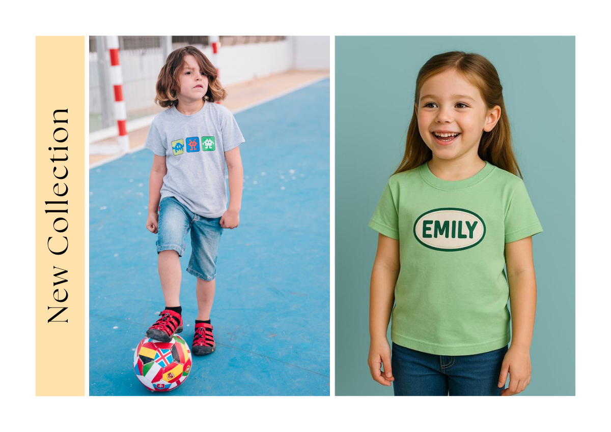 Bright, bold, and full of personality – the Daydream Collection is here to spark imagination! From custom name tees to playful, sticker-style patches on backpacks, each piece is made for kids who dream big and dress loud.